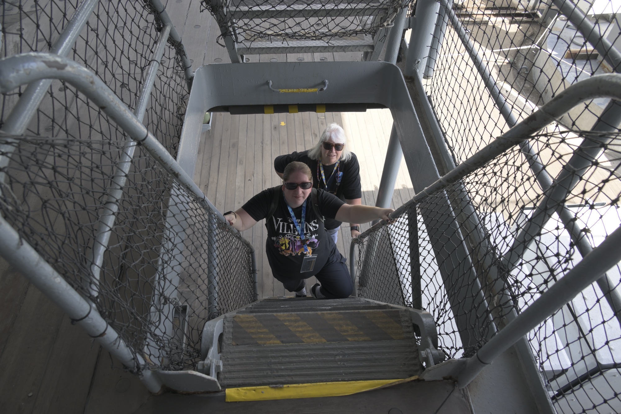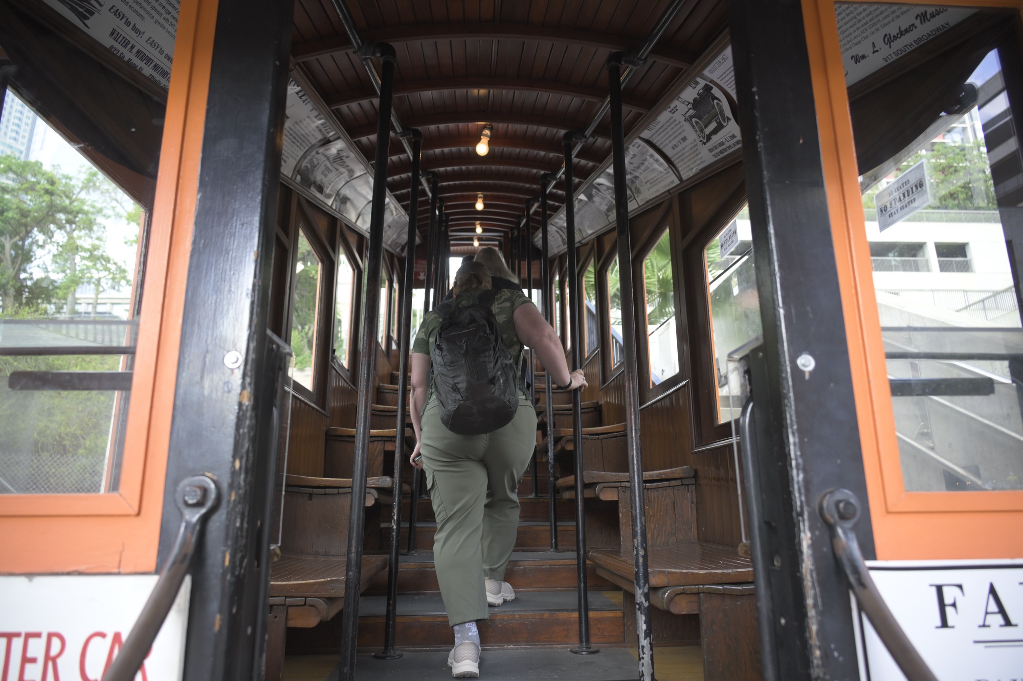 Climbing into an Angels Flight car