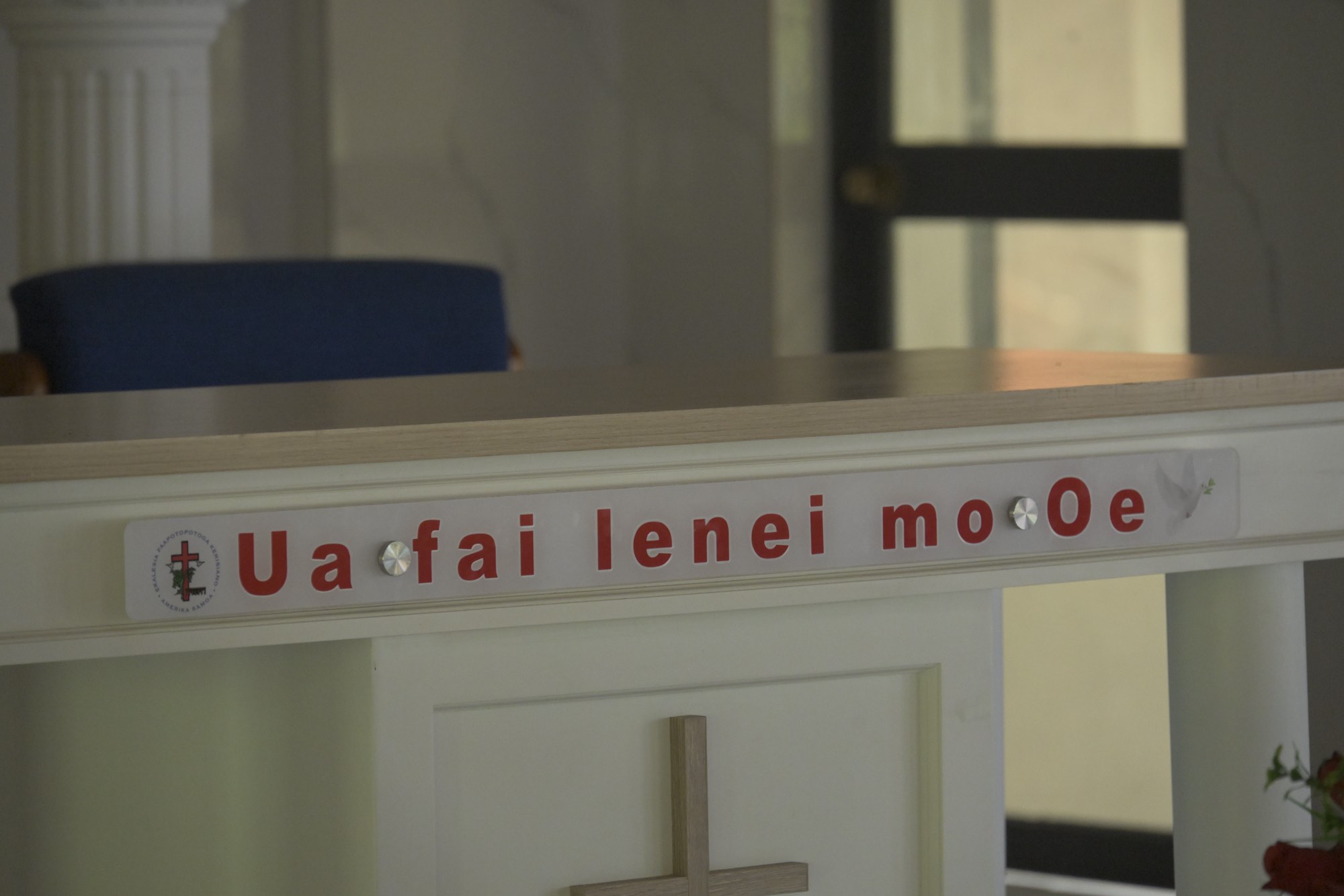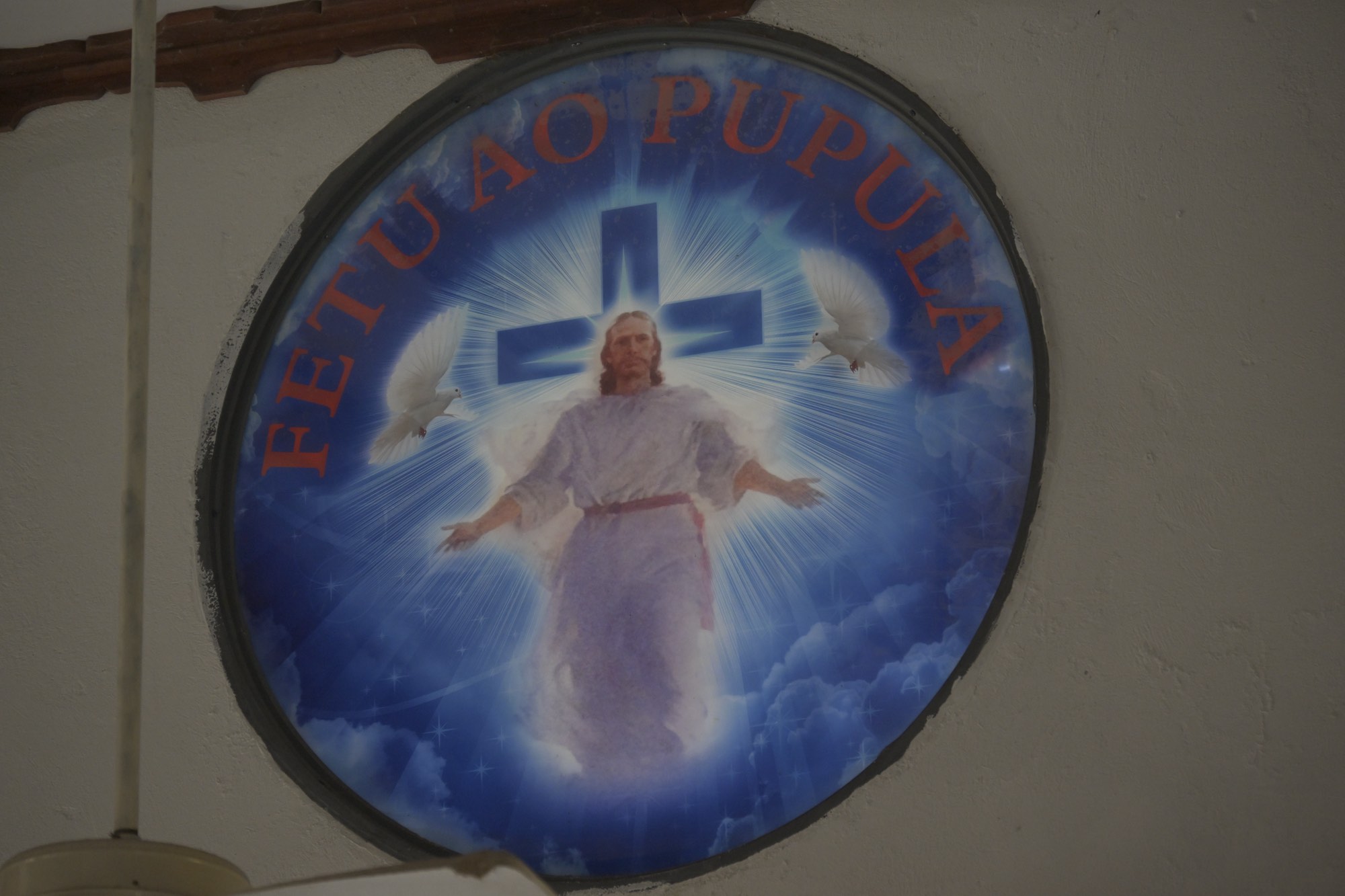 Window above the entry – fetu ao pupula refers to a hymn emphasizing the message of Jesus