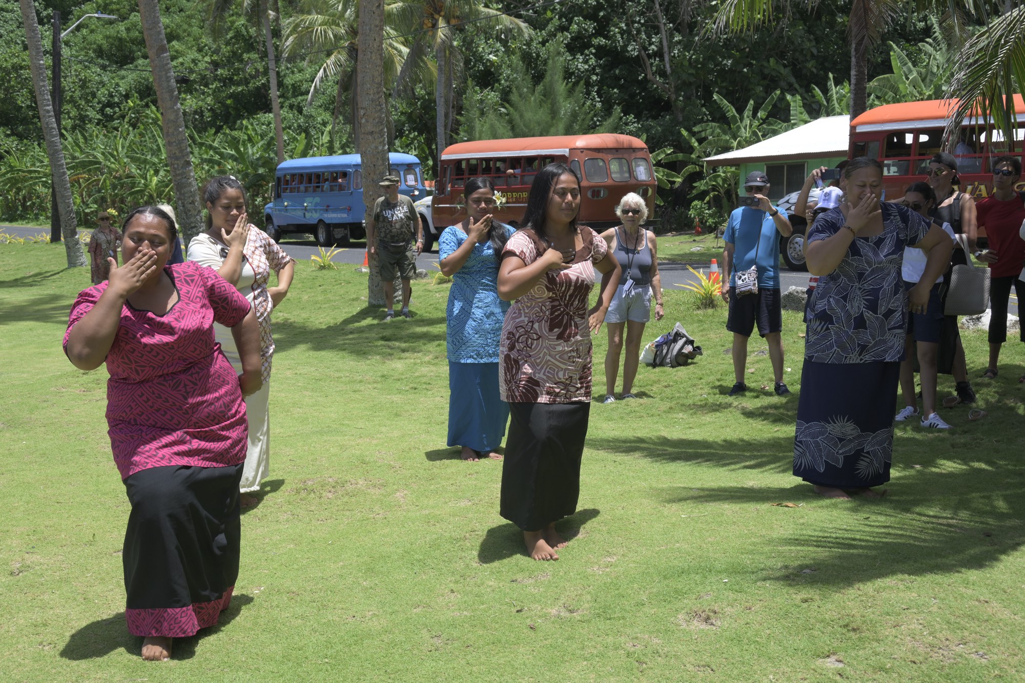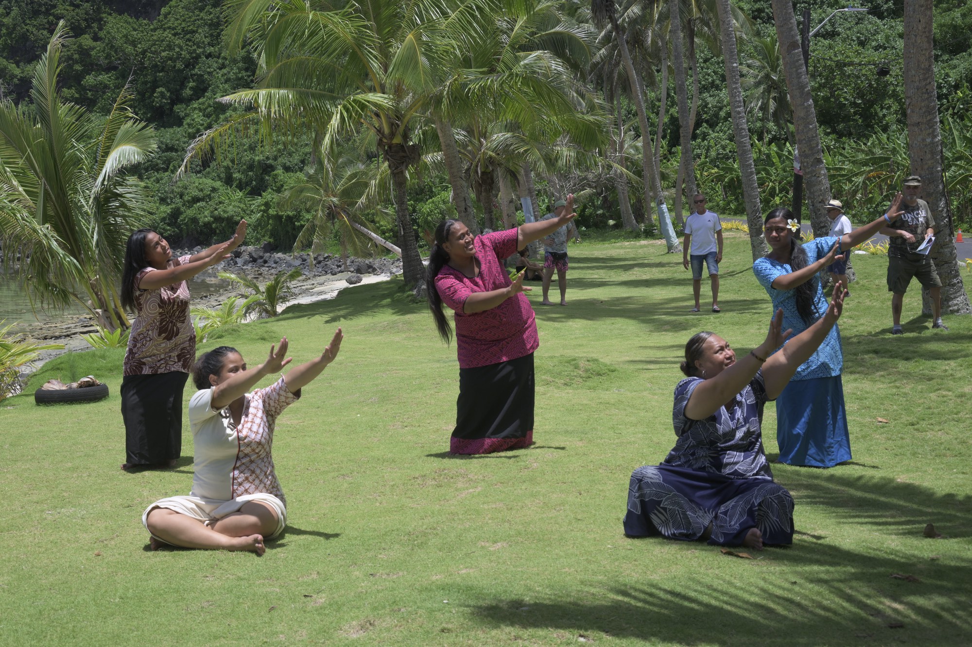 Tour guides dancing a Samoan dance