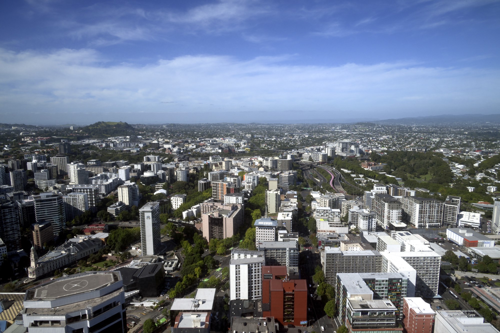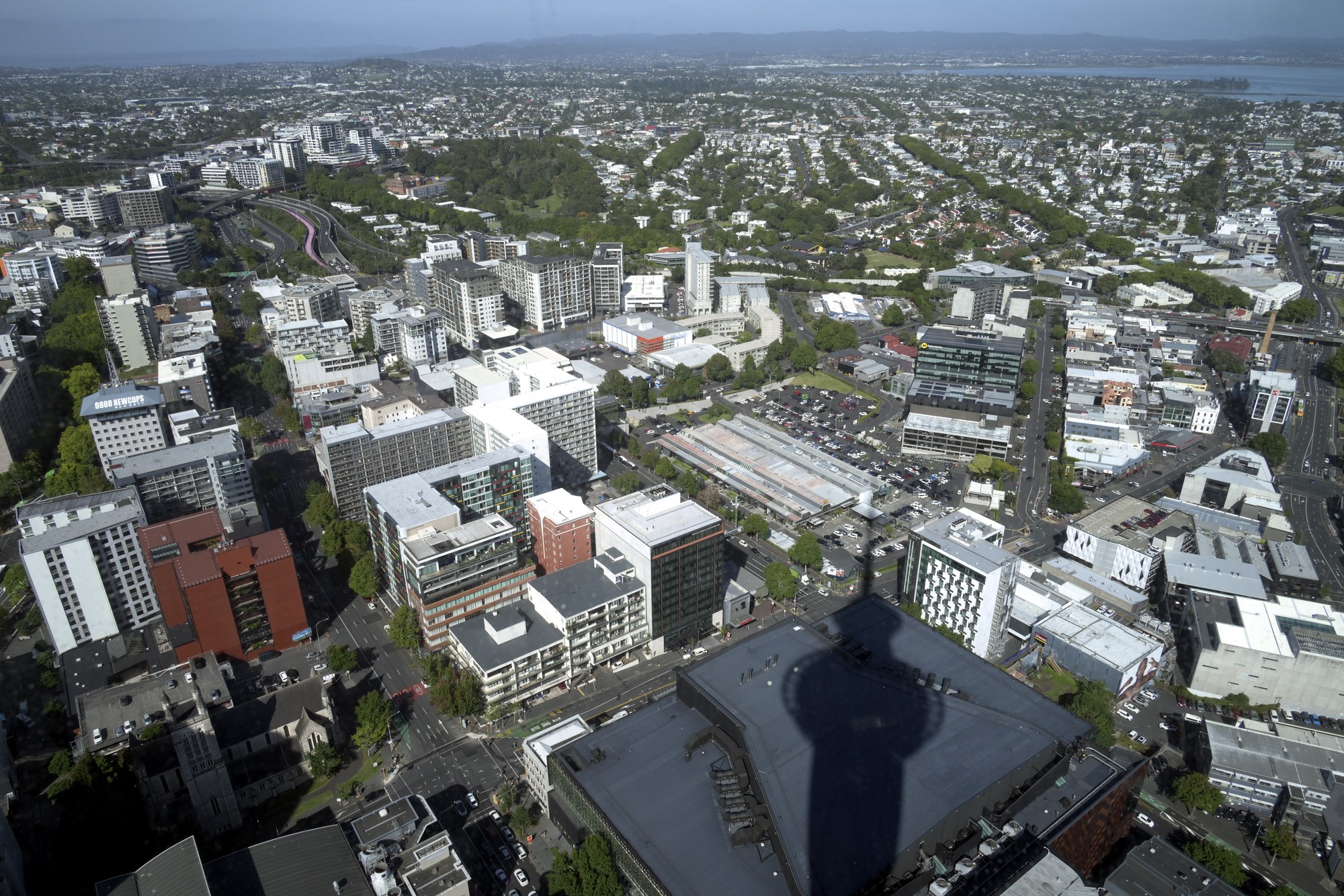 View to the Southwest with shadow of Sky Tower