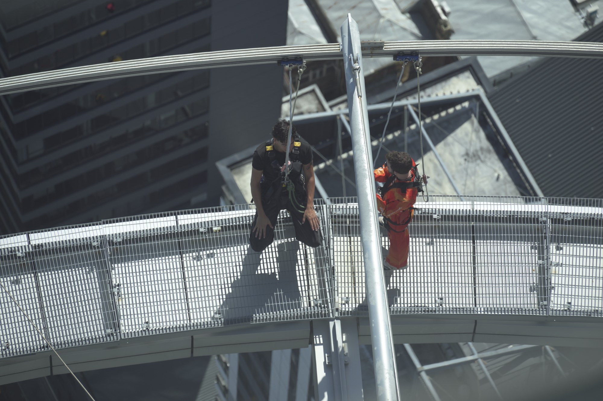 Looking down through one of the glass panels on the floor