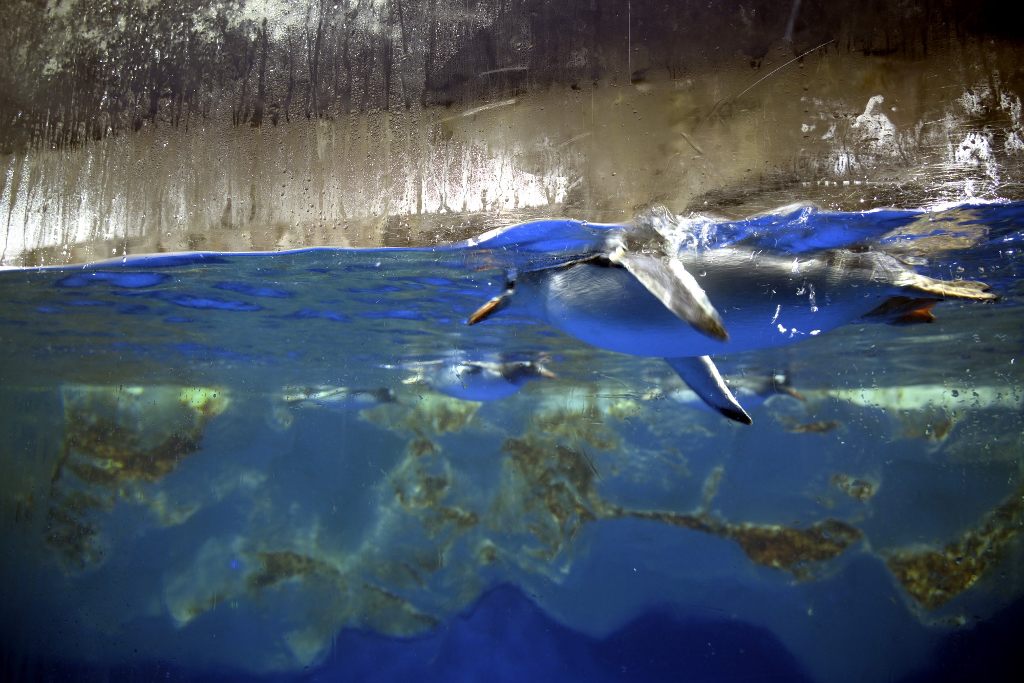 Penguins swimming