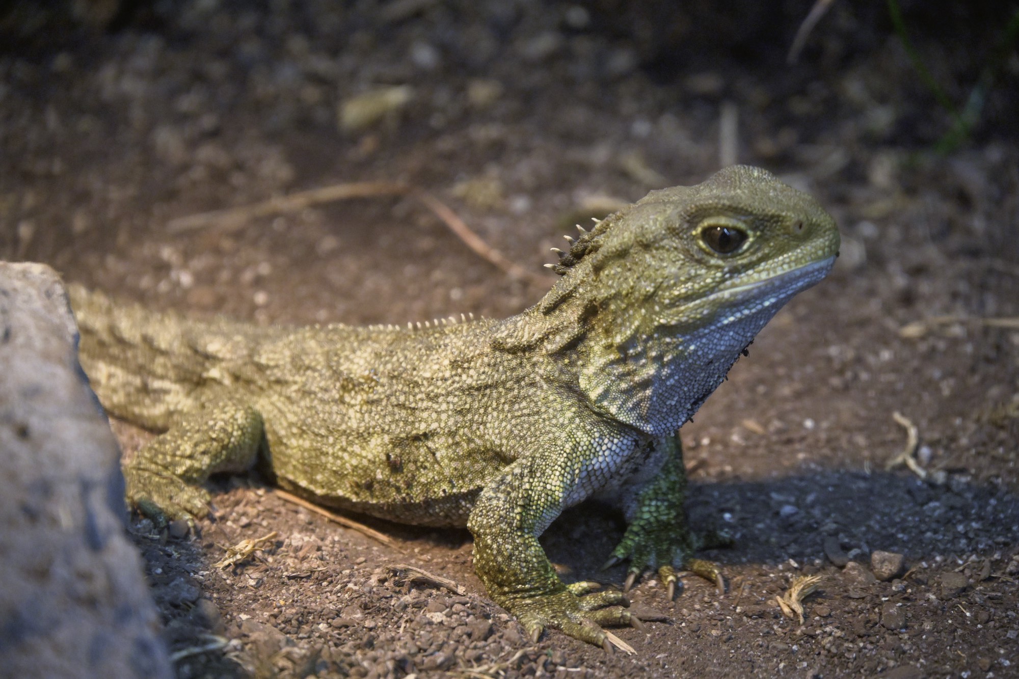One of the turtles in the tank